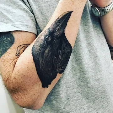 32. On the subject of crow tattoos, Liam has another crow tattoo on his forearm by world famous, tattoo artist Freddie Negrete. The father of the black and grey style of tattooing.